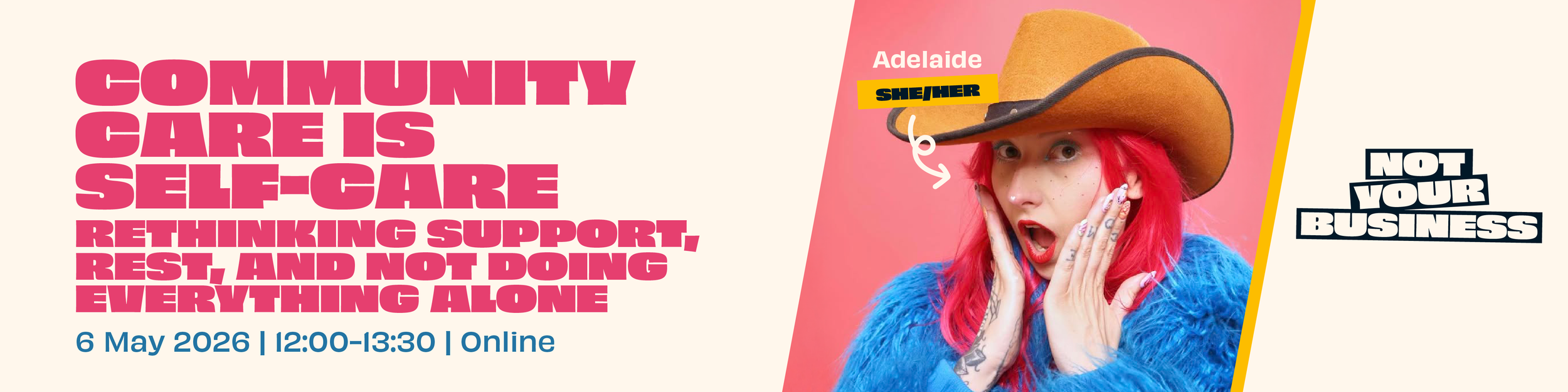 Self-care isn’t always bubble baths and candles. This gentle workshop reimagines care as collective, not solo. Through discussion and creative reflection, we’ll explore community care, interdependence, and sustainable ways to support each other, without judgement, pressure, or the need to be productive. With Adelaide, living life loudly as an AuDHD person and showing the world that being different is something to celebrate.